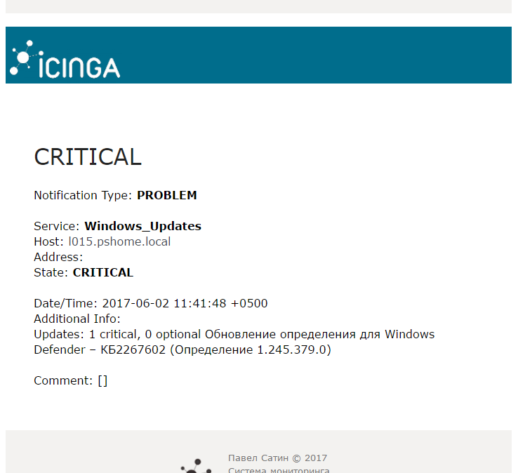 ```Скрипт отправки оповещения о состоянии хоста /etc/icinga2/scripts/mail-host-notification.sh: