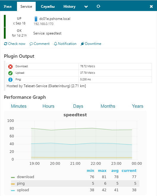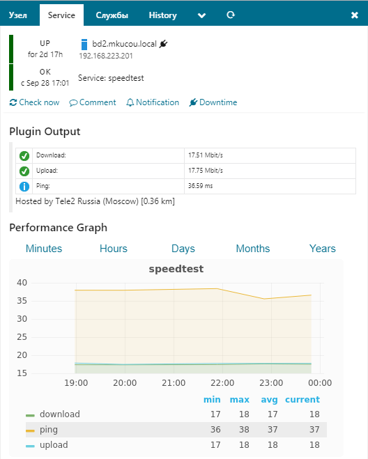 Description: Скрипт для Icinga 2 - Проверка скорости интернет