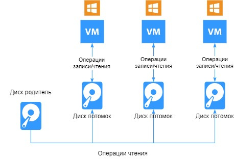 - диск потомок может выступать родителем для нового разностного диска