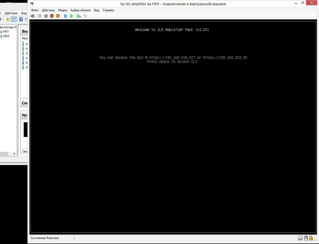 Требования: To ensure that your host machine meets the hardware requirements to run VMware ESXi Server v.5.5 or later, see the documentation on the VMware website. The iLO Amplifier Pack guest VM requires the following resources to be available on the ESXi server: 4 vCPUs, 8 GB RAM, 100 GB of free HDD space, 2 Network Ports 1.0 Gbps.
