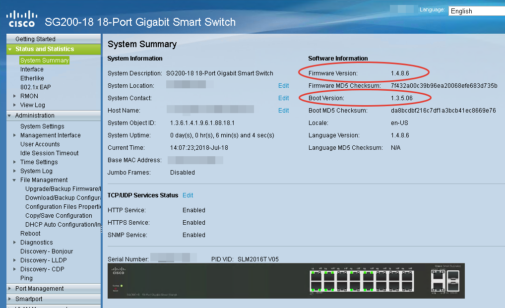 Для обновления прошивки коммутаторов cisco SG200 до последней версии (на данный момент 1.4.8.6), предварительно нужно обновится до версии загрузчика 1.3.5.06 и версии прошивки 1.3.7.18.