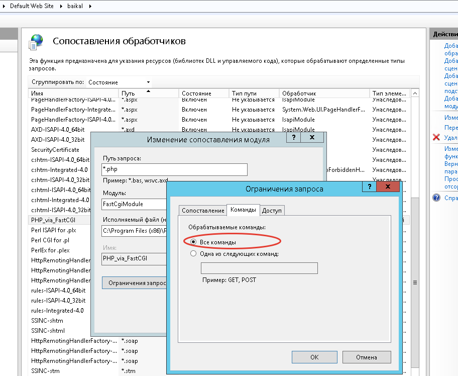PHP_via_FastCGIв «Ограничения запроса» выбрать все обрабатываемые команды.