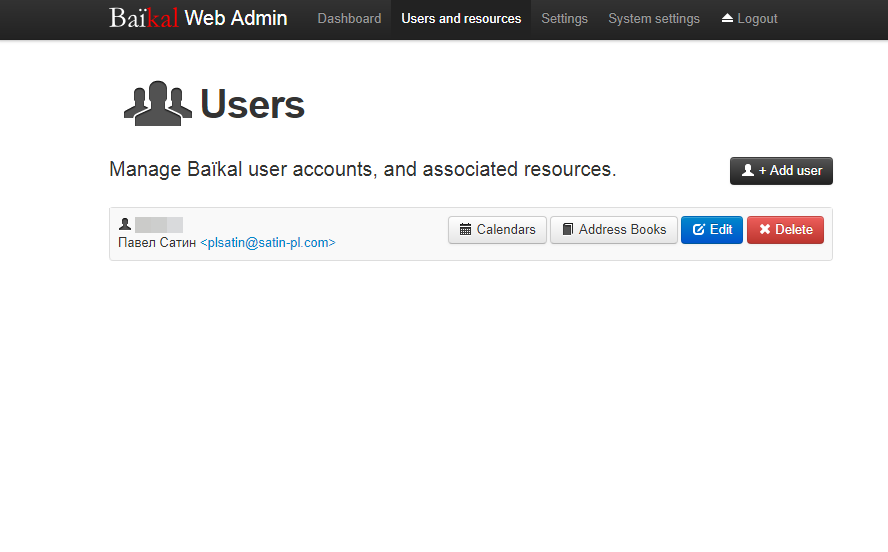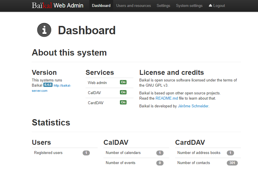 /baikal/html/admin/ - Следуем инструкциям мастера